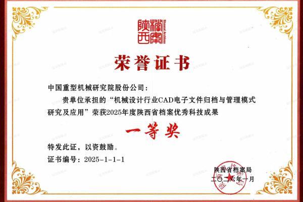 中国重型院档案科技项目喜获陕西省...