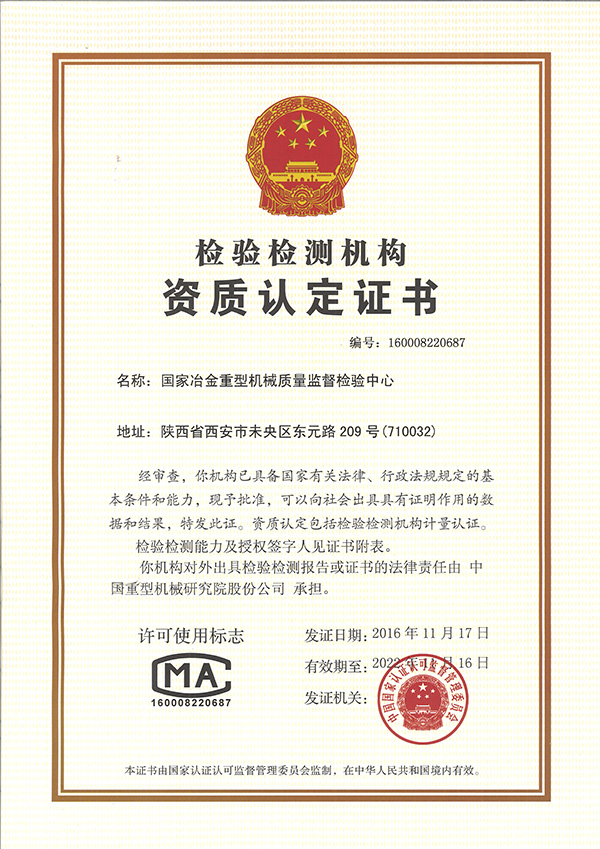 国检中心资质认定证书