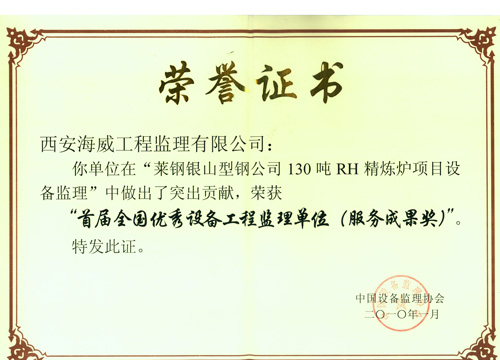 西安海威工程监理有限公司荣获“首届全国优秀设备工程监理单位(服务成果奖)”