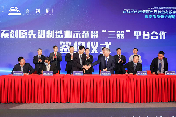 5月7日,秦创原·2022西安市先进制造与数字经济高质量发展论坛暨秦创原先进制造业示范带建设推进会在西安经开区举办,我院党委书记、董事长王社昌,陕钢集团党委书记、董事长、总经理杨海峰出席大会,并代表双方签订秦创原先进制造业两链融合“促进器”合作协议。
