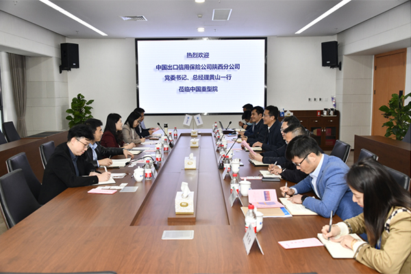 中国信保陕西分公司业务一处,业务二处负责人,中国重型院技术公司、资产财务部、综合管理部主要负责人等参加座谈。