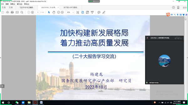 上海公司党支部召开网络学习会议, 支部书记王耀带领大家学习党的党的二十大报告,传达院党委及杨行镇综合党委的工作部署,要求支部党员把学习贯彻党的党的二十大精神作为当前和今后一个时期的重大政治任务,切实把思想和行动统一到党的二十大精神上来,在全面建设社会主义现代化国家、全面推进中华民族伟大复兴的新征程中贡献力量。公司总经理李剑锋在总结发言中要求公司党员用党的党的二十大精神指导自己的工作,要求上海公司积极发挥在华东地区及宝武集团的桥头堡功能,做好创新转型,脚踏实地,扎根扎稳,实现高质量发展。支部党员纷纷表示要敢想敢为、善作善成,用党的党的二十大精神武装头脑,做好本职工作。