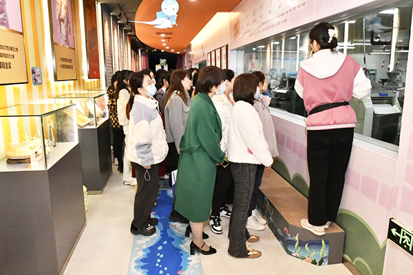 蛋糕完成后,女职工们跟随导览员游览了御品轩的蛋糕制作工厂,深入了解了御品轩的蛋糕制作流程与产品成果。