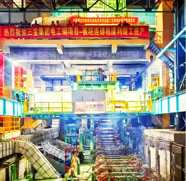 近日,由中国重型院总承包新建的福建三宝集团高牌号、高磁感电工钢单流板坯连铸机EPC项目一次性热试成功。