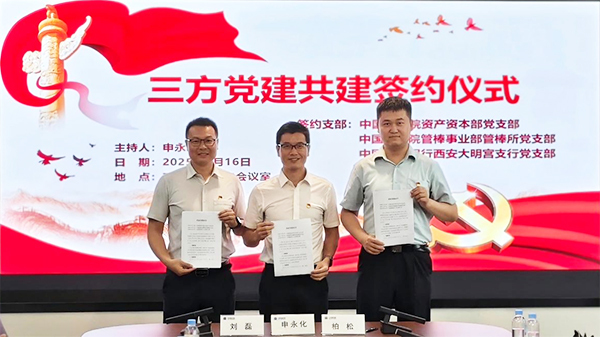 座谈会上,中国重型院资产资本部党支部书记、管棒所党支部书记以及建行大明宫支行党支部书记共同签署了党建共建协议。