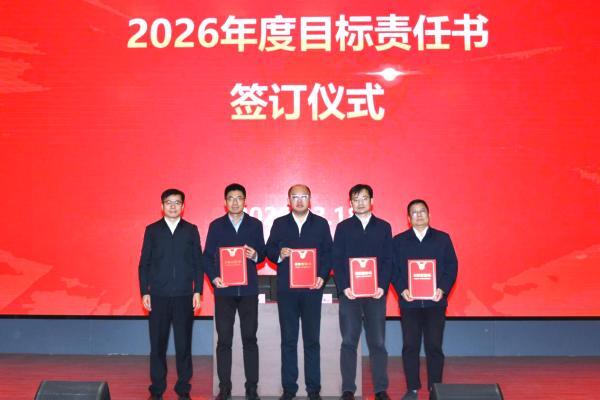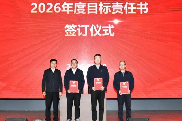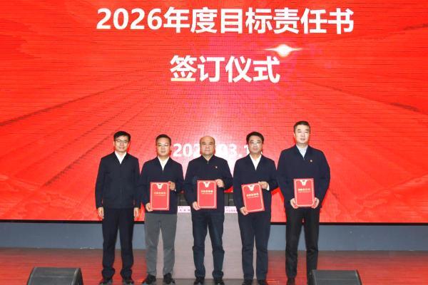 丘铭军代表经理层,与各业务单位及子公司负责人签订《2026年度目标责任书》。会后,2026年安全、环保责任书同步下达。