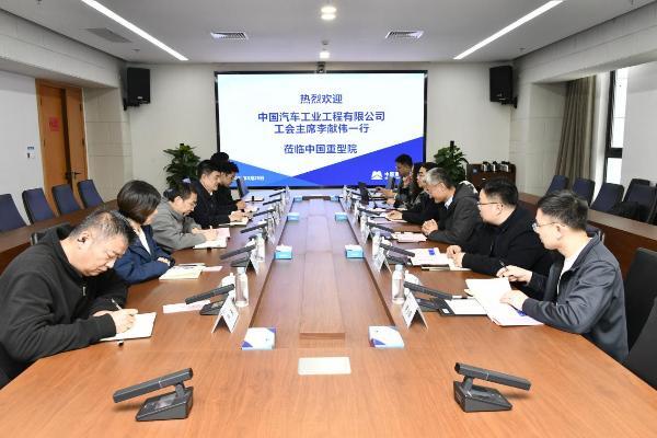 为贯彻落实国机集团“加强内部协同、相互赋能”工作要求,近日,中国汽车工业工程有限公司(以下简称中汽工程)工会主席李献伟带队,来中国重型院开展管理服务赋能生产经营工作调研交流。我院党委委员、副总经理叶志刚热情接待。
