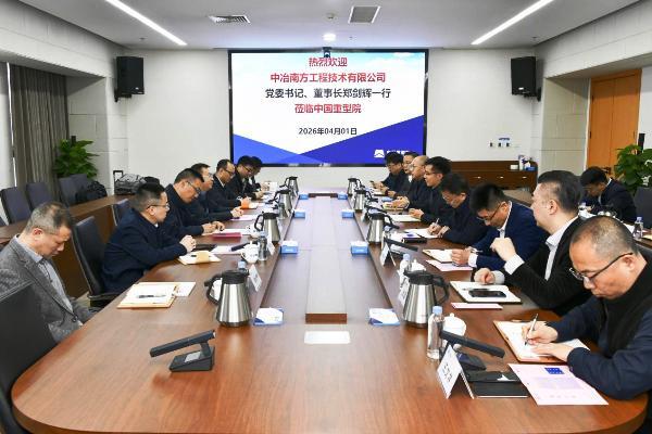 近日,中冶南方工程技术有限公司(以下简称中冶南方)党委书记、董事长郑剑辉一行到中国重型院访问交流。中国重型院党委副书记、总经理丘铭军热情接待。双方围绕钢铁冶金装备领域的技术研发、工程化融合、产业布局与协同创新路径开展了深度交流。
